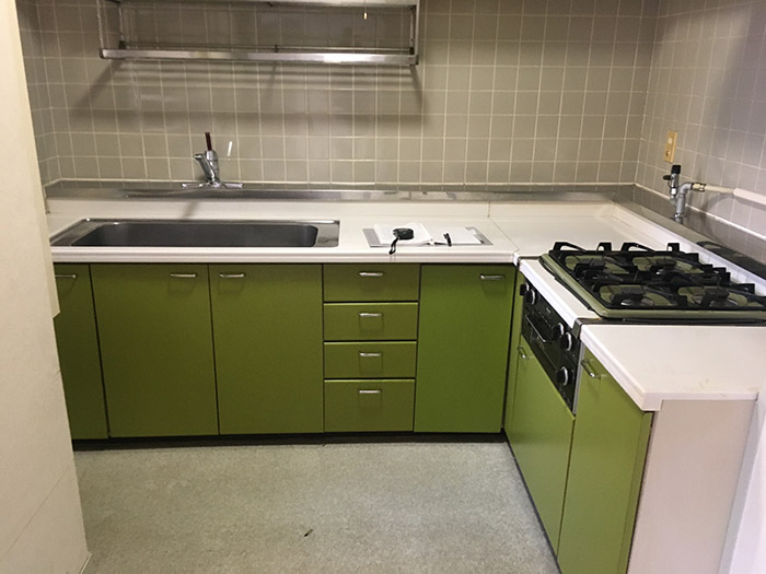 キッチン部分に小火をおこした借家をキッチンを取り替えて天井壁床を張替えリフォームしました。